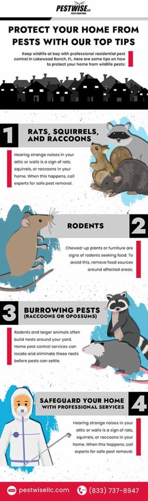Lakewood Ranch’s proximity to nature makes it a prime location for wildlife pests. If you live in the area, investing in pest control is key to keeping these pests out of your home. Don’t wait for the situation to escalate. Pestwise offers expert home pest control services to safeguard your home. Contact us today to schedule an appointment!
